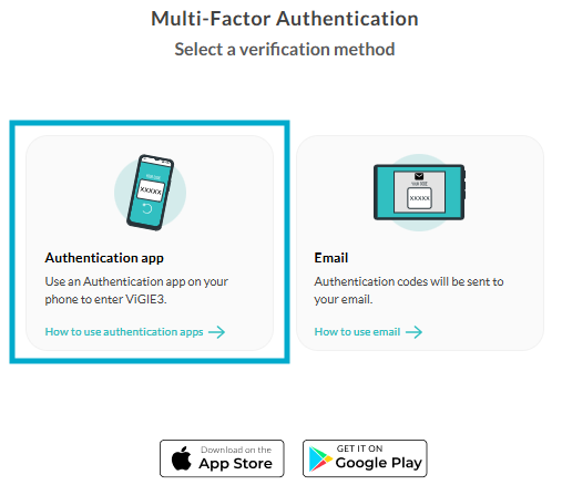 When using MFA (Multi-Factor Authentication) with an authenticator app, you first need to install one from the Play Store or Apple Store, such as Microsoft Authenticator or Google Authenticator.