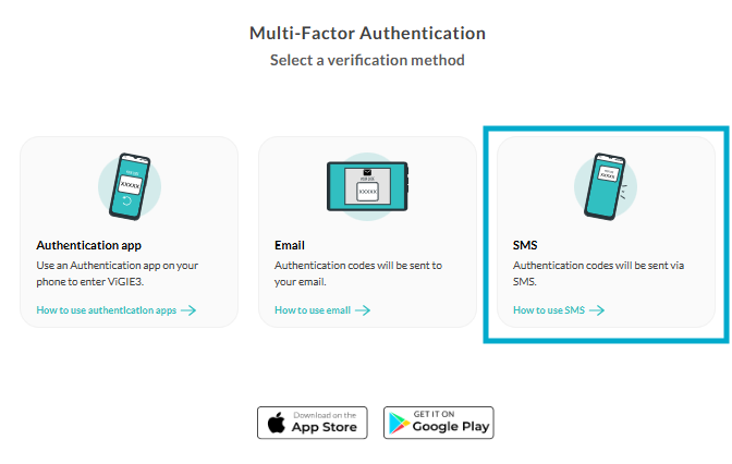 Note: If the SMS option is not available, it may be due to one of the following reasons: 1. Your organization’s administrator has not enabled it, and you will not be able to use SMS as an authentication method. 2. You do not have a phone number linked to your ViGIE account. To learn how to add one, click here. 3. Your organization’s communication credits runned out. In this case, you will be automatically redirected to the email option: How to use MFA (email).