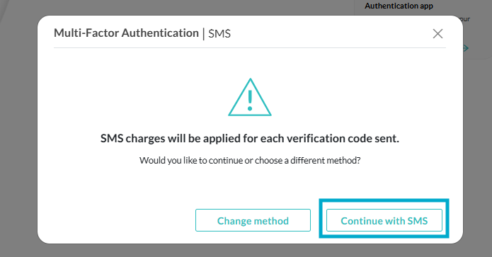 Step 7: A modal will appear informing you that each verification SMS will consume your organization’s communication credits. To learn more about how communication credits are spent, click here. If you still wish to continue, click Continue with SMS.